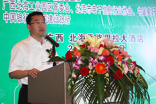 ' 作為本次論壇邀請的演講嘉賓,中國電子集團控股有限公司副總經(jīng)理、北海市電子信息行業(yè)協(xié)會會長賀海華在論壇上做了題為“招商扶商 合作共贏 助力北海電子信息產(chǎn)業(yè)發(fā)展”的主題演講。賀海華會長向與會嘉賓介紹了北海市電子信息行業(yè)協(xié)會的基本情況和開展的重點工作,并分享了作為會長單位的中國電子北海產(chǎn)業(yè)園在過去幾年來,搭建平臺、招商扶商,助力實現(xiàn)了北海電子信息產(chǎn)業(yè)跨越式發(fā)展。未來,協(xié)會及會長單位將繼續(xù)完善產(chǎn)業(yè)發(fā)展環(huán)境,搭建政企、銀企等多方溝通平臺,合作共贏,助力北海千億元電子信息產(chǎn)業(yè)發(fā)展。