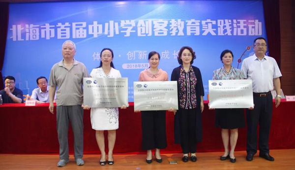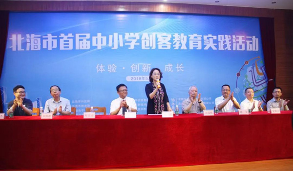 北海市科技局、北海市教育局、中國電子學(xué)會(huì)、中國電子北海產(chǎn)業(yè)園主辦的2018年北海市科技活動(dòng)周暨首屆中小學(xué)創(chuàng)客教育實(shí)踐活動(dòng)于5月21日開幕,北海市副市長黃江出席開幕式并宣布教育實(shí)踐活動(dòng)啟動(dòng)。